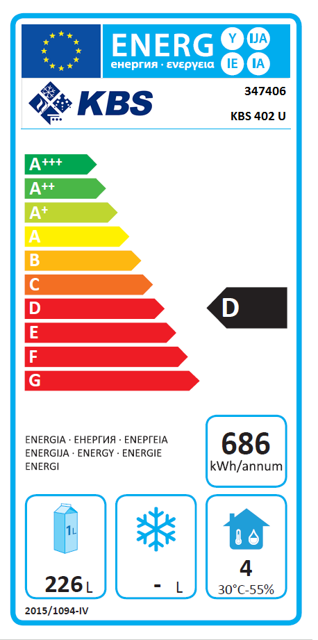- Download Energiedatenblatt Umluft Gewerbekühlschrank KBS 402 U