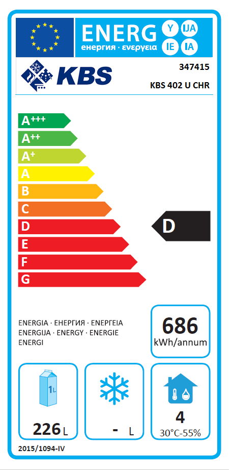 - Download Energiedatenblatt Umluft Gewerbekühlschrank KBS 402 U CHR