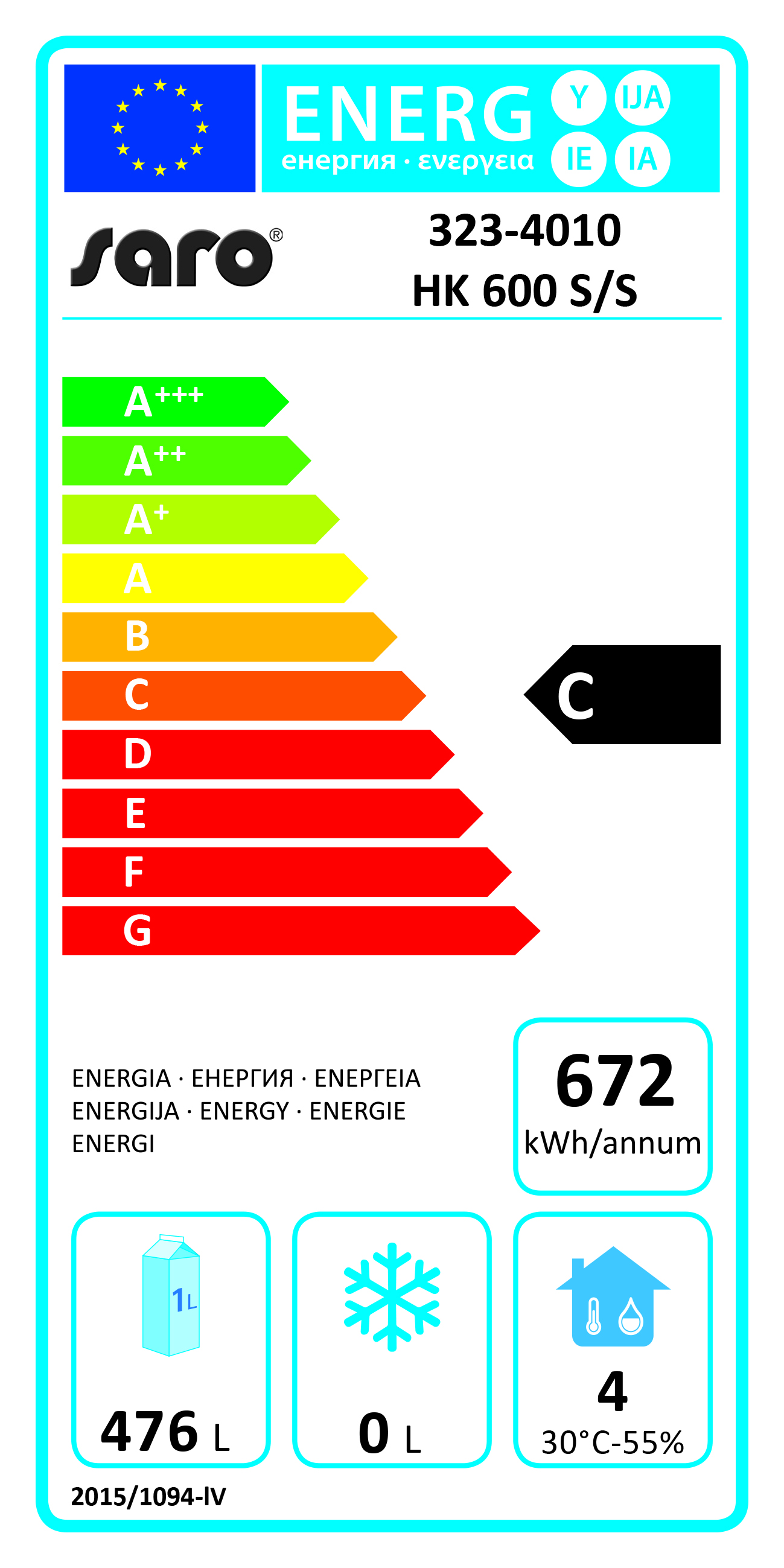 - Material: (Gehäuse) Edelstahl, (Innenraum) Kunststoff, weiß, - Türanschlag wechselbar, - 4 höhenverstellbare Roste, - Statische Kühlung mit Umluftventilator, - Kältemittel: R600a, - Energieeffizienzklasse: C, - Gewicht: 132 kg, - Maße: B 777 x L 695 x H 1895, - Inhalt: 620 Liter, - temp. -2 / +8 °C, - Anschluss: 230 V - 50 Hz - 0,185 kW
