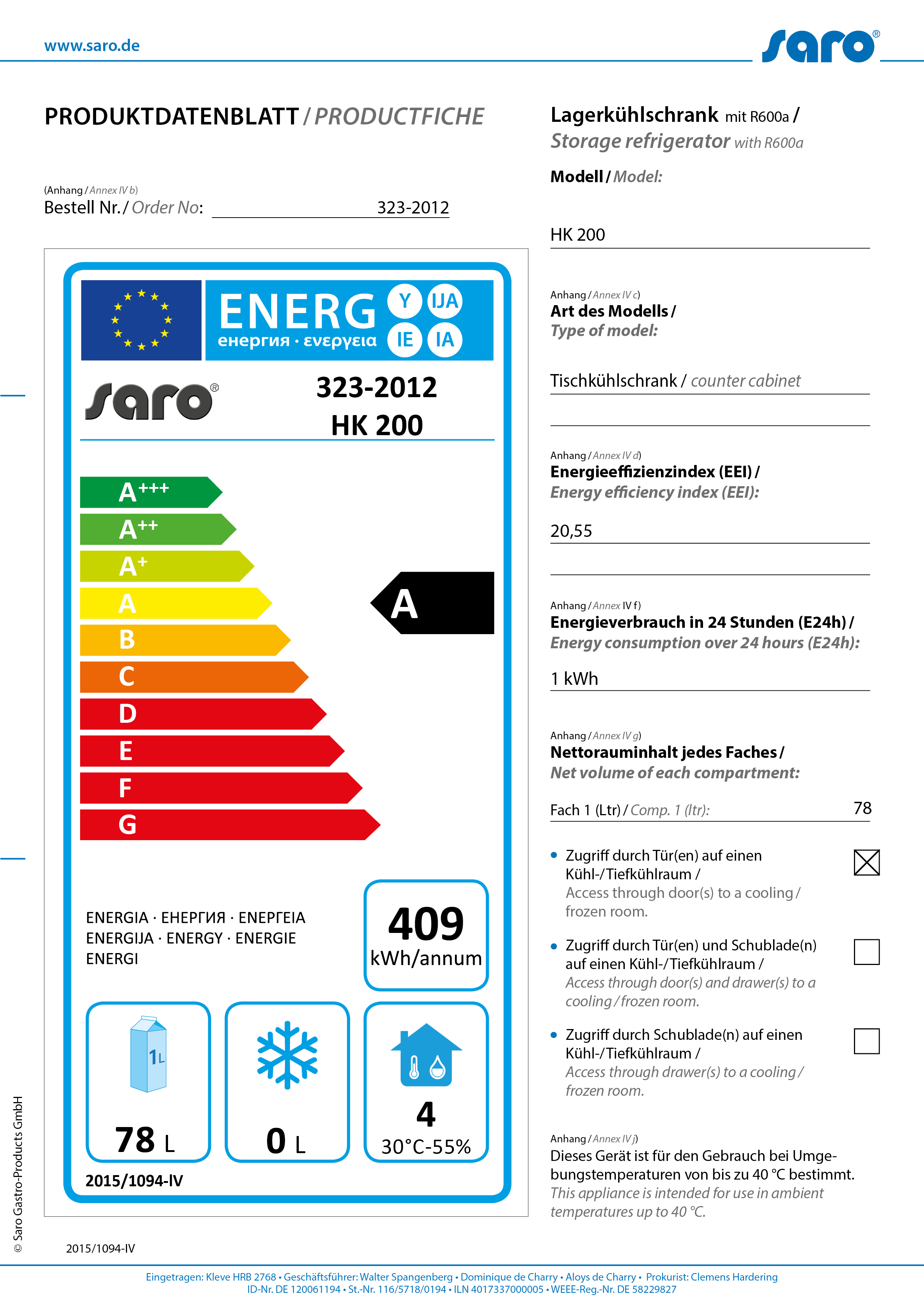 - Download Datenblatt Kühlschrank mit Umluftventilator HK 200