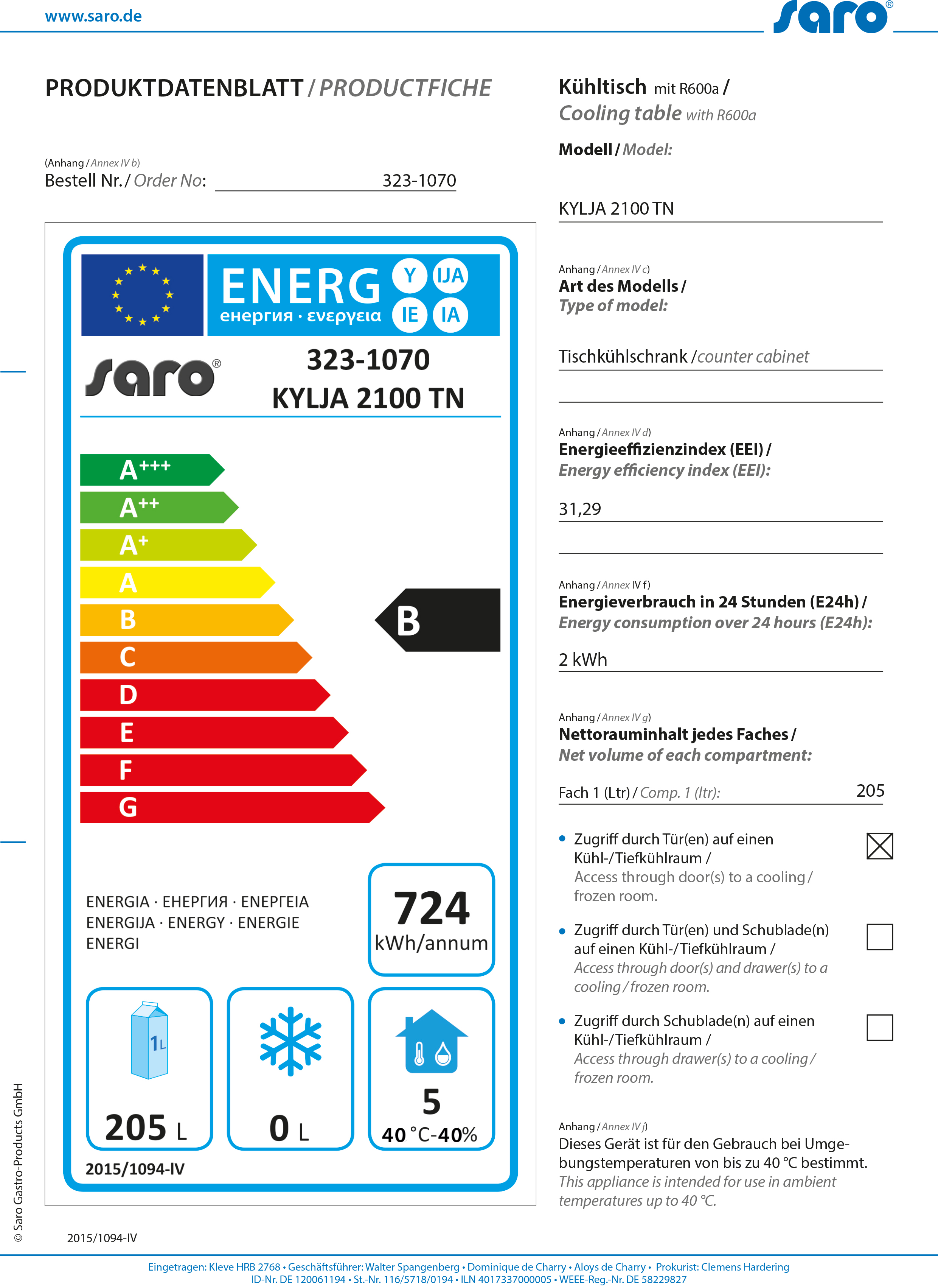 Weiterführende Links zu "SARO Kühltisch KYLJA 2100 TN"