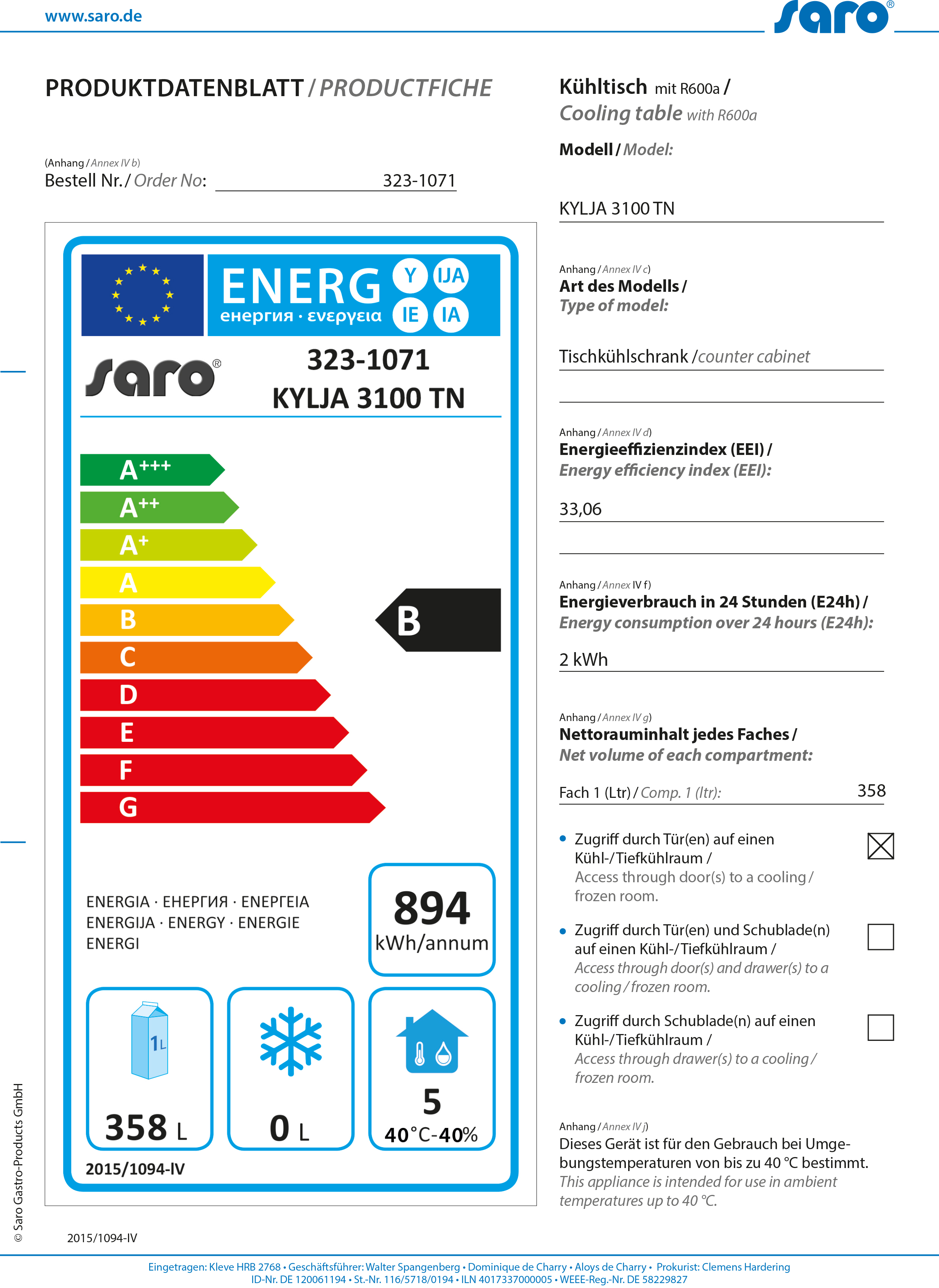 Weiterführende Links zu "SARO Kühltisch KYLJA 3100 TN"
