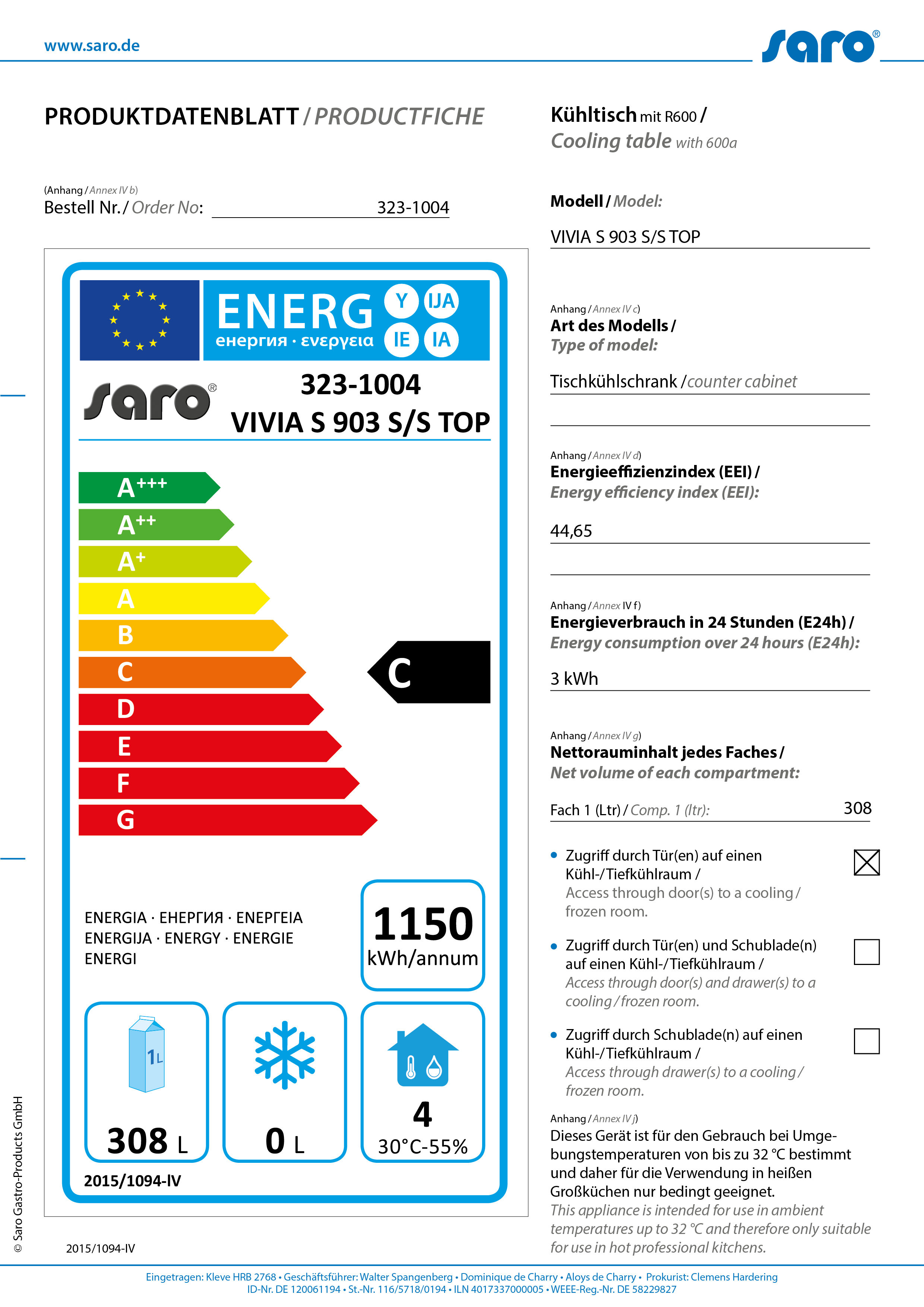 Weiterführende Links zu "SARO Kühltisch VIVIA S 903 S/S TOP"