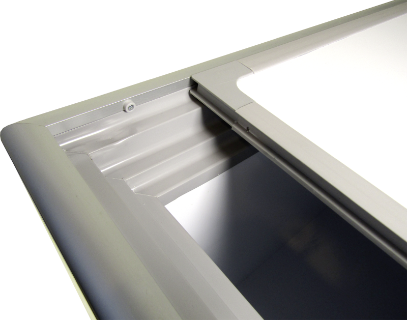 - Schiebedeckelrahmen mit Vertiefung für energieeffizientes Schließen der Deckel