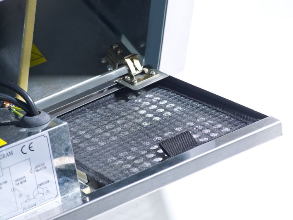- Boden als Wanne ausgebildet, mittiger Tauwasserablauf