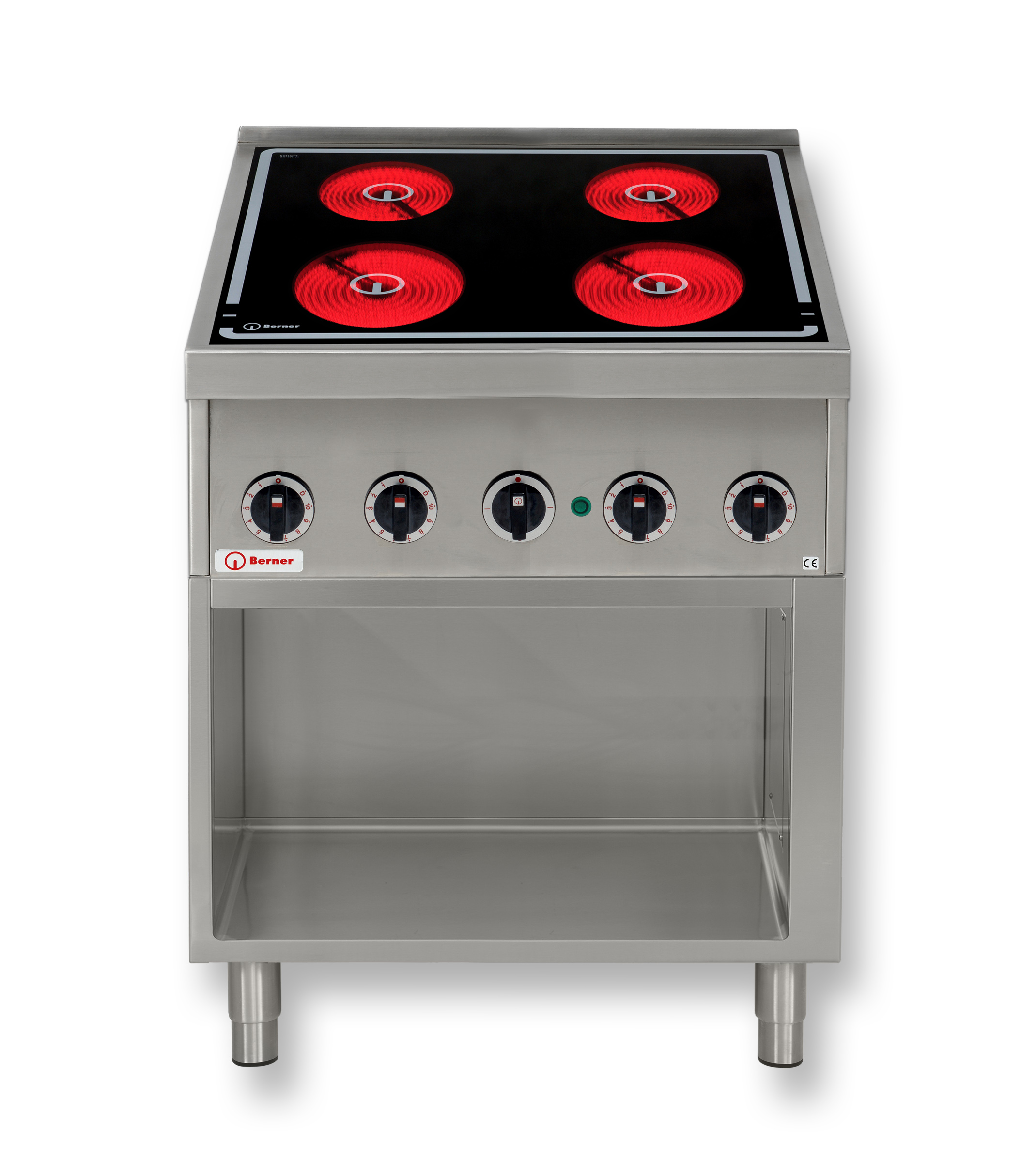Bei den Speedstar-Geräten aus dem Hause Berner handelt es sich um besonders schnell aufheizende Ceran-Kochtechnik mit elektronischer Leistungsregelung über Potentiometer und nicht wie bei den meisten Glaskeramikkochfeldern über thermostatische Stufenschalter. Sie sind hochwertige Gastronomiegeräte in Ihrem Betrieb bereits gewohnt oder haben die Nase voll von billigen Schnäppchen die nach kurzer Zeit den Geist aufgeben?!? Dann liegen Sie bei Berner Kochtechnik schon mal grundsätzlich richtig ! Der Berner Ceranherd BSH4KTDC ist ein leistungsfähiger Zweikreis-Ceranherd mit automatischer Topferkennung und automatischer Heizzonenumschaltung der Oberklasse. Bei diesem Gastroherd geht es nicht um Schnäppchen wobei GastroXtrem wie immer günstig ist, sondern um Leistung und Zuverlässigkeit...