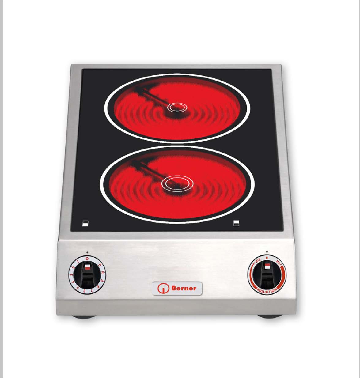 Preiswerte Glaskeramik-Doppelkochplatte BS2SK von Berner Induktion. Top Qualität und Leistungsfähigkeit Made in Germany. Steckdosentaugliches Cerankochfeld mit zwei Strahlungsheizzonen mit 18 und 20 cm Durchmesser für vielfältigste Anwendungen in der Gastronomieküche und in der Hotellerie.