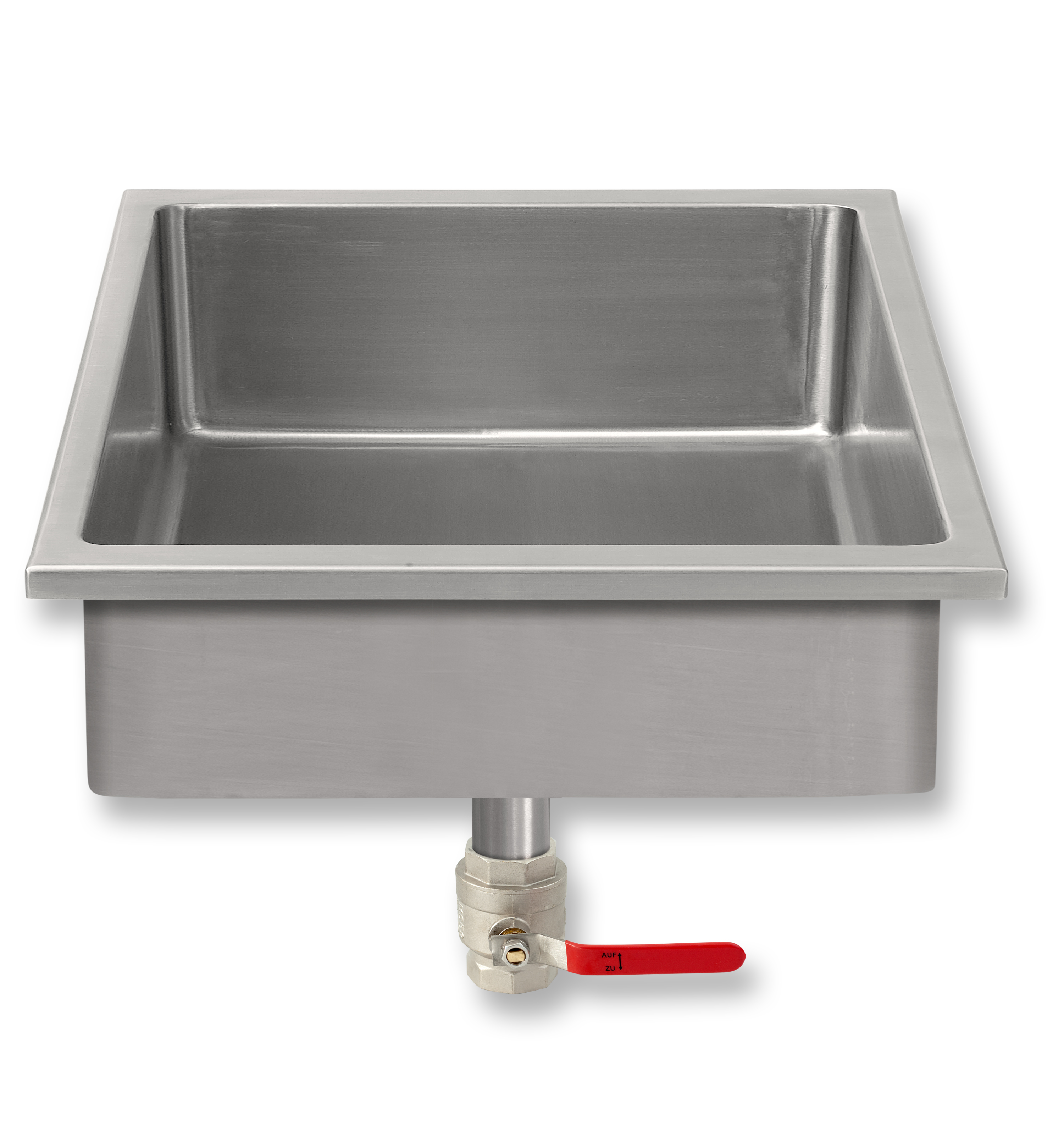 - vorne mit rundem 55 mm Abwurfschacht und 2 Zoll Kugelhahn in bauseitigen Unterbau