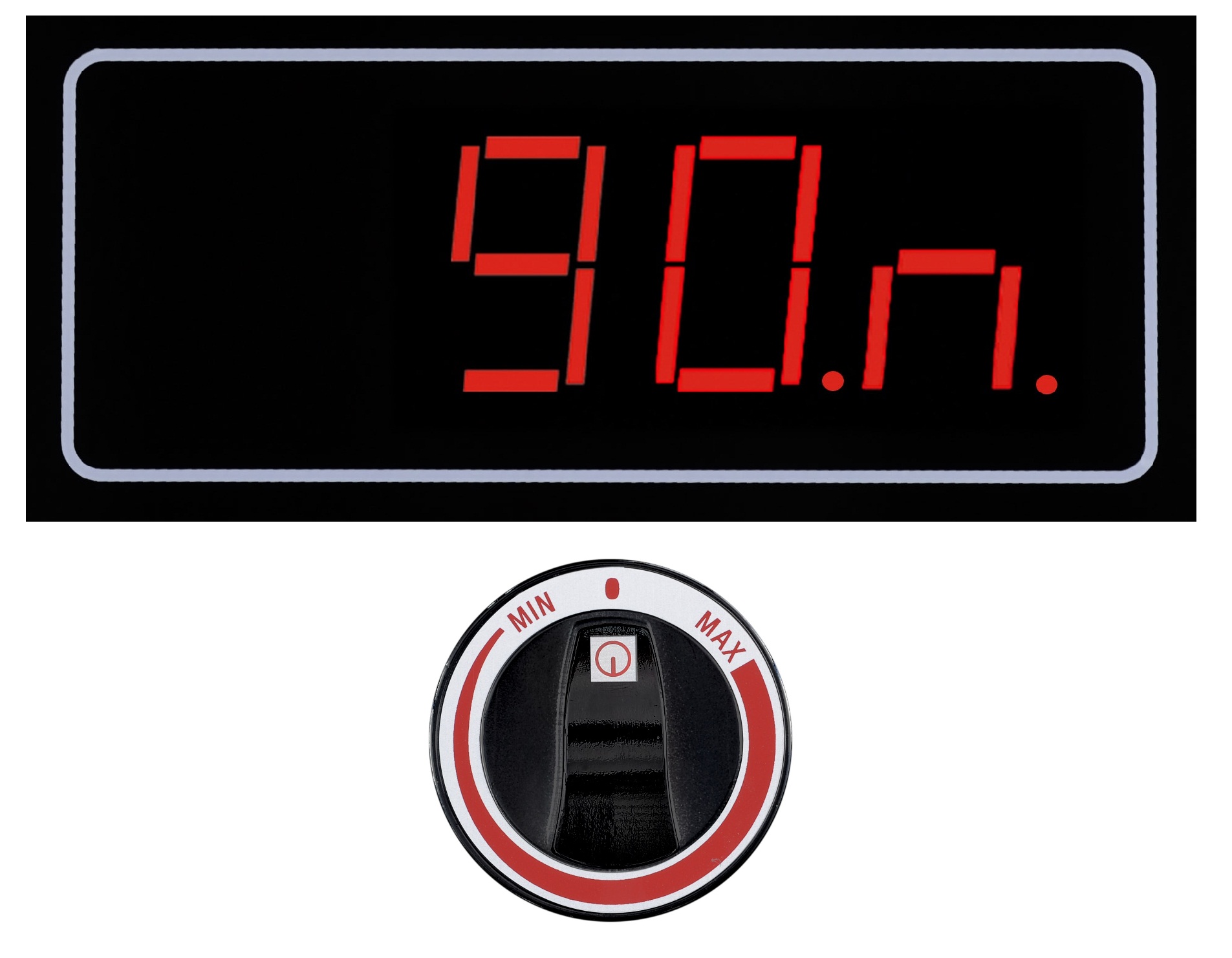 - Präzise elektronische Leistungsregelung mit LED-Anzeige und Bedienknebel