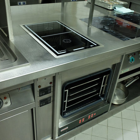 Das dritte Bild zeigt was alles möglich ist. WIr haben vor Ort beim Kunden in Berlin im India-Club-Restaurant des Adlon Berlin einen bestehenden Herdlock von BOHNER modifiziert. Hier haben wir dieses Induktions-Doppel-Kochfeld BI21EGAFL10 mit FLEX-Funktion verbaut. Und auch der Unterbau wurde hier neu gestaltet.