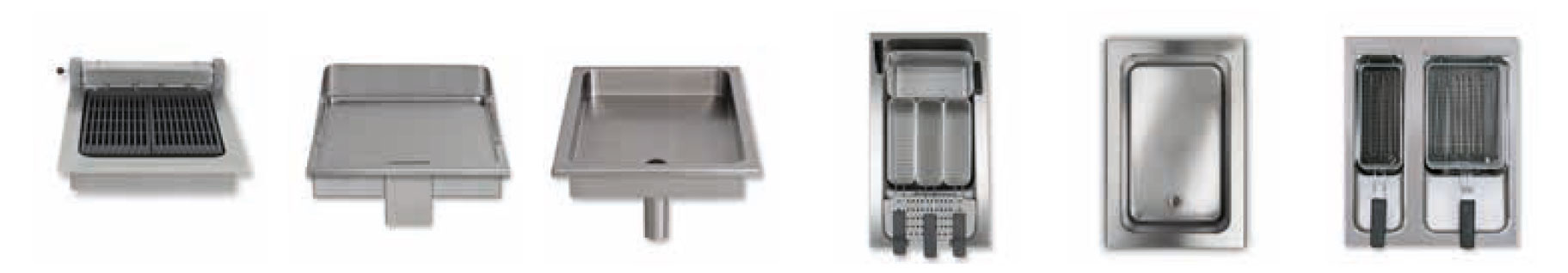 Korpus im Wunschmaß zum Einbau v. Bratplatten, Fritteusen, Kochern, Nudelkochern und Wasserbädern. Unterbau vorn offen.
