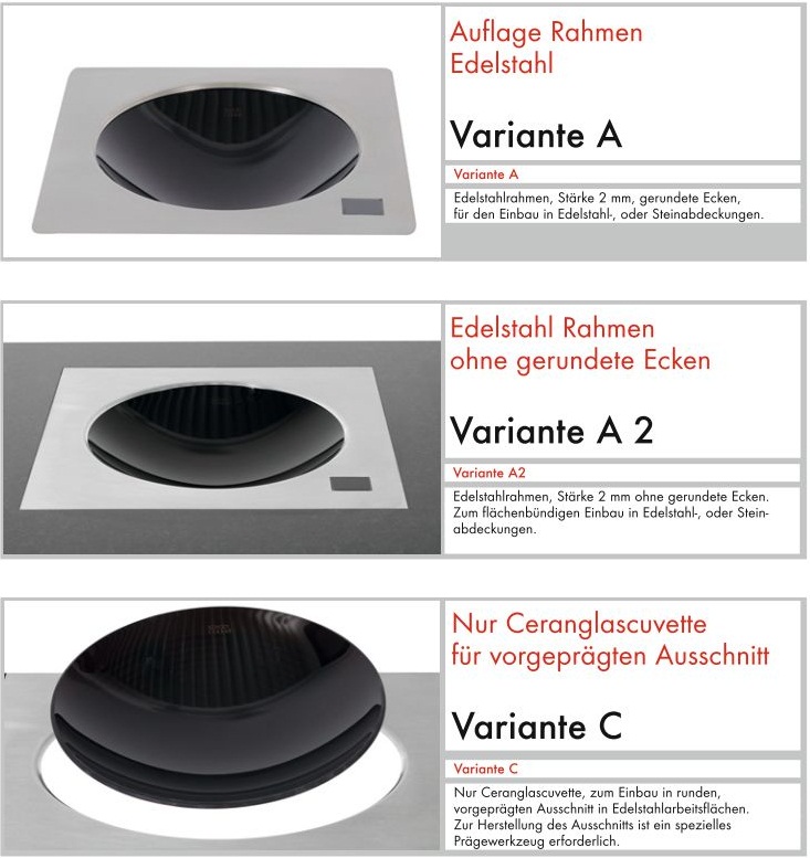 - wahlweise Einbauvariante A mit Edelstahl-Auflagerahmen abgerundet