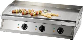 - Material: Edelstahl, - Bratplatte glatt, - 3 Bratzonen, - Edelstahl Spritzschutz an drei Seiten, - Herausnehmbarer Fettauffangbehälter, - Gewicht: 51 kg, - temp. 0 / +300 °C, - Anschluss: 400 V - 50 Hz - 9 kW