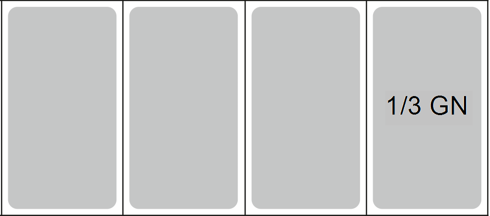 - Für GN 1/3 Schalen bis maximal 150 mm Tiefe
