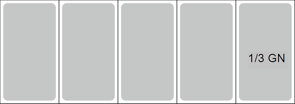 - Für GN 1/3 Schalen bis maximal 150 mm Tiefe