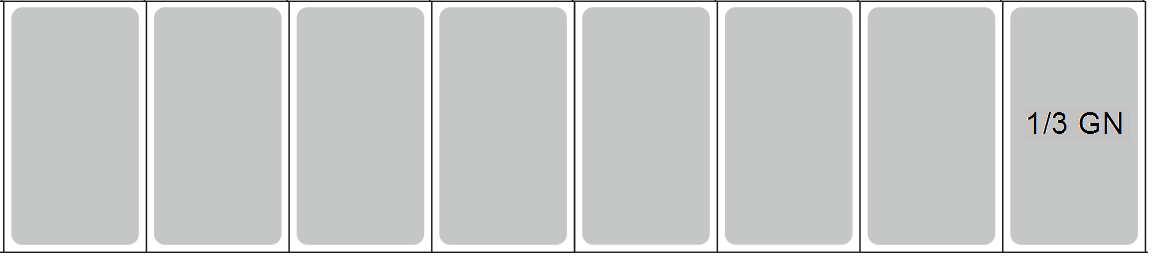 - Für GN 1/3 Schalen bis maximal 150 mm Tiefe