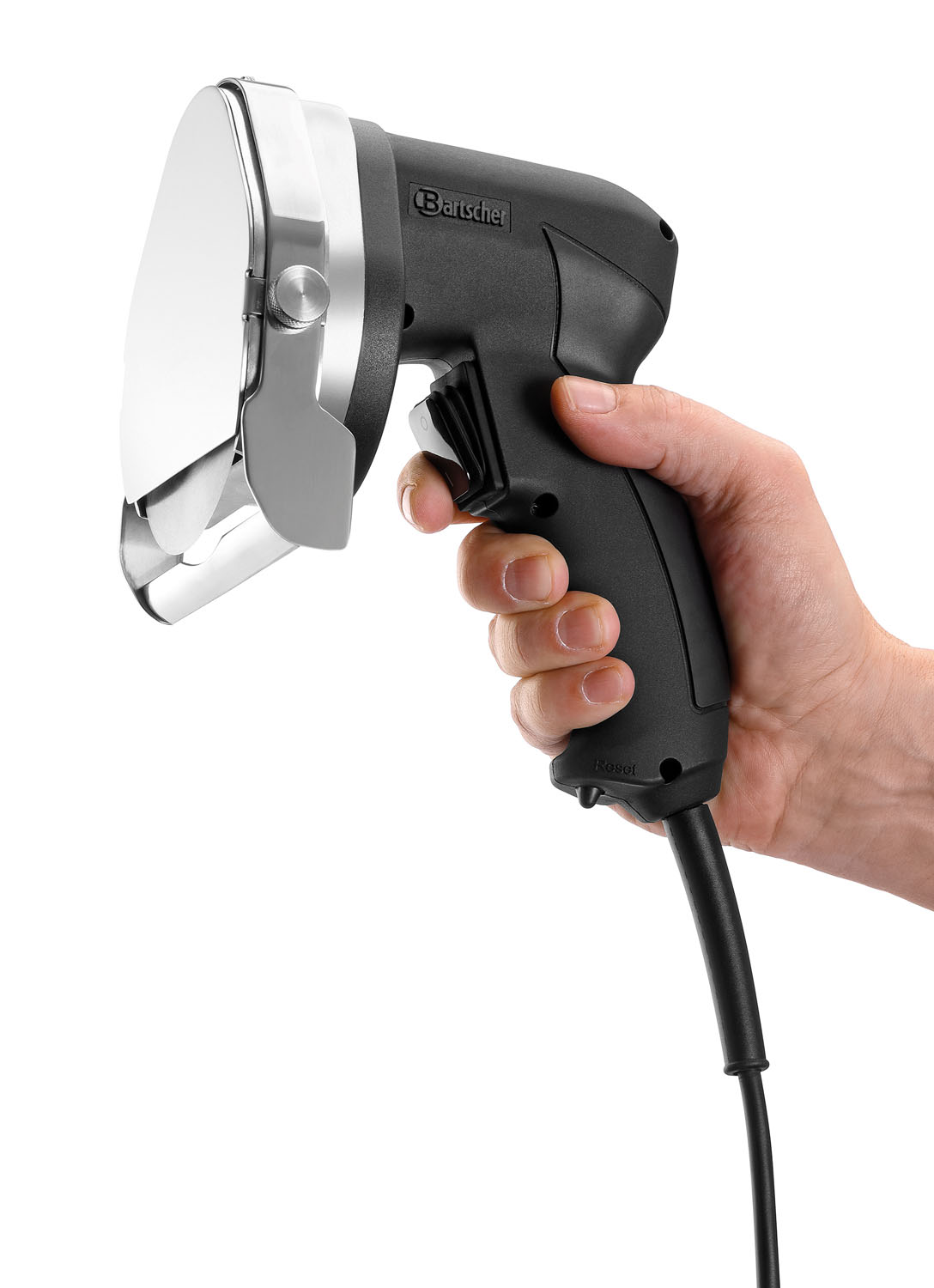 Die Schnittstärke des elektrischen Dönermessers lässt sich spielend leicht von 0 bis 6 Millimeter regulieren. Mit der glatten Edelstahl-Klinge lässt sich so das Fleisch flexibel und präzise in fein säuberliche Stücke schneiden.