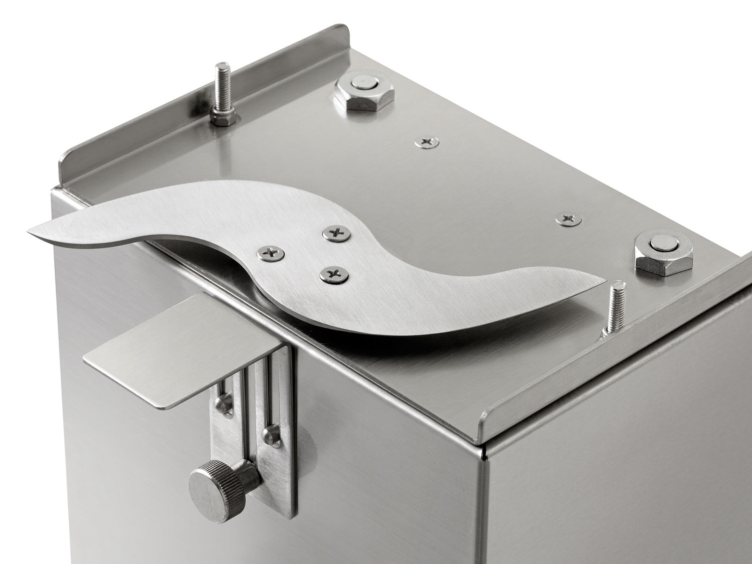 Schnell und zuverlässig: Der Currywurst-Schneider mit automatischer Einschaltfunktion sorgt für einen unkomplizierten und schnellen Arbeitsablauf, auch in Stoßzeiten. Für einen bedarfsgerechten Einsatz ist die Scheibenstärke entsprechend der Wurst-Sorte regulierbar.