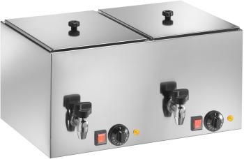 - Material: Edelstahl, - Inklusive Rost, - Kontrolleuchte, - Ein-/Ausschalter, - Mit Ablasshahn, - Gewicht: 15 kg, - Maße: B 560 x L 350 x H 290, - temp. 0 / +110 °C, - Anschluss: 230 V - 50 Hz - 2 x 1 kW