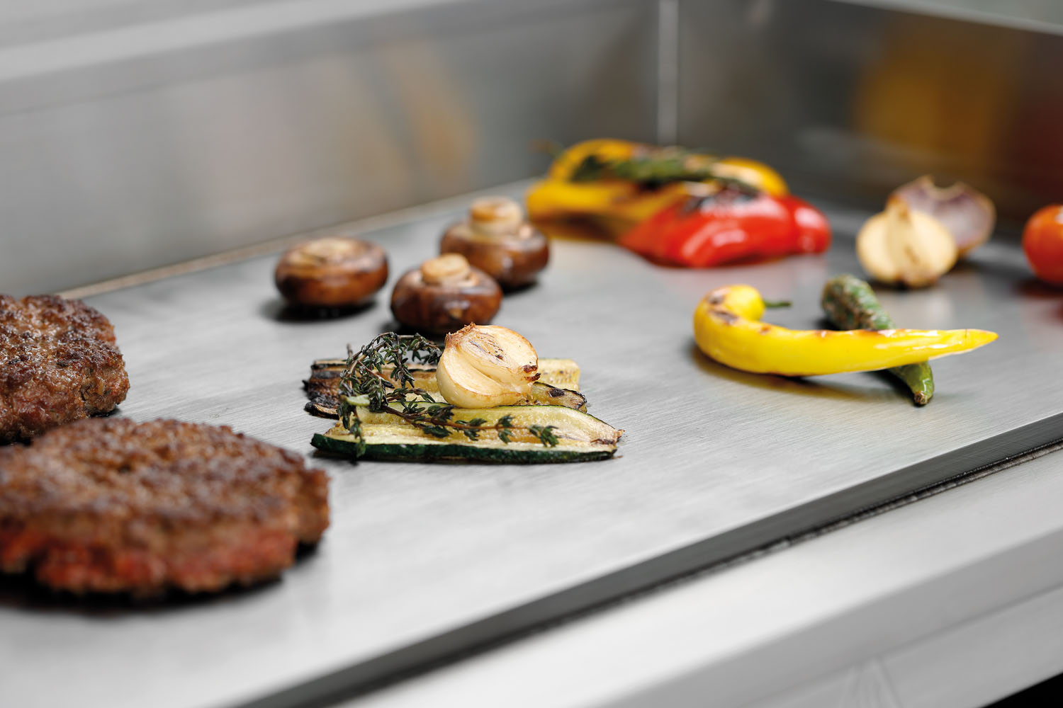 Die platzsparende Grill-Gratinier-Kombination verfügt über eine leistungsstarke Griddleplatte mit 2 getrennt schaltbaren Heizzonen. Die Wärmezufuhr des Salamanders lässt sich perfekt mit dem höhenverstellbaren Rost und der stufenlos einstellbaren Temperatur regulieren. Mit dem digitalen Timer sind Grill- und Gratiniervorgänge bestens unter Kontrolle – auch in Stoßzeiten.