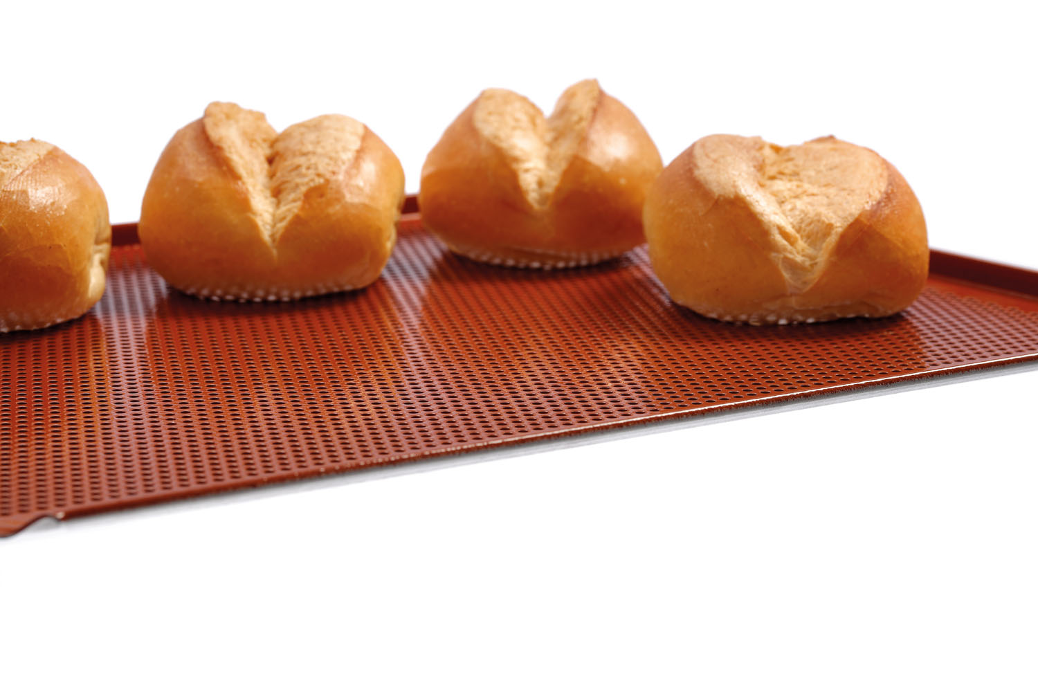 Unkompliziert und umweltschonend – Das Lochblech mit Silikonbeschichtung ermöglicht ein unkompliziertes Backen ohne Verwendung von Backpapier oder Backfolie. Der 3-seitige Rand ermöglicht ein sicheres Backen und Transportieren.