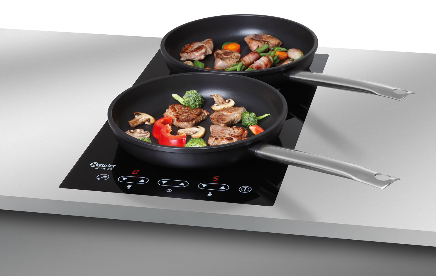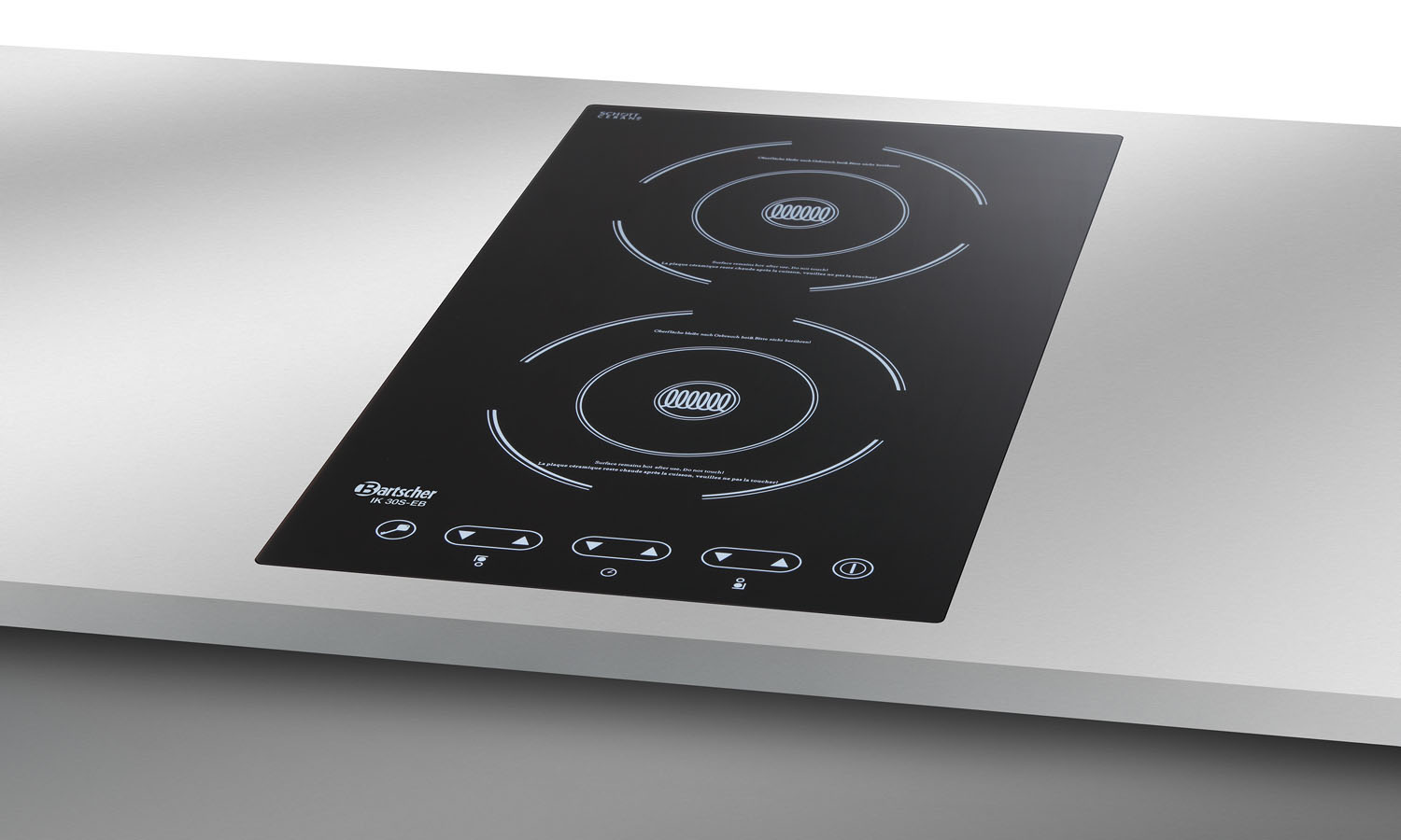 Einbaufähiges, platzsparendes Induktionskochfeld mit hintereinander liegenden Kochstellen... mehr