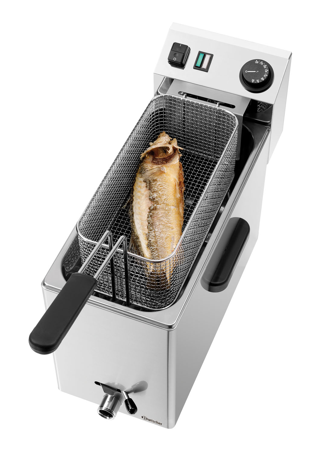 Ob gebackener Fisch oder auch Frikandeln – Die extra lange Ausführung des Beckens ermöglicht das Frittieren insbesondere von länglichem Frittiergut.