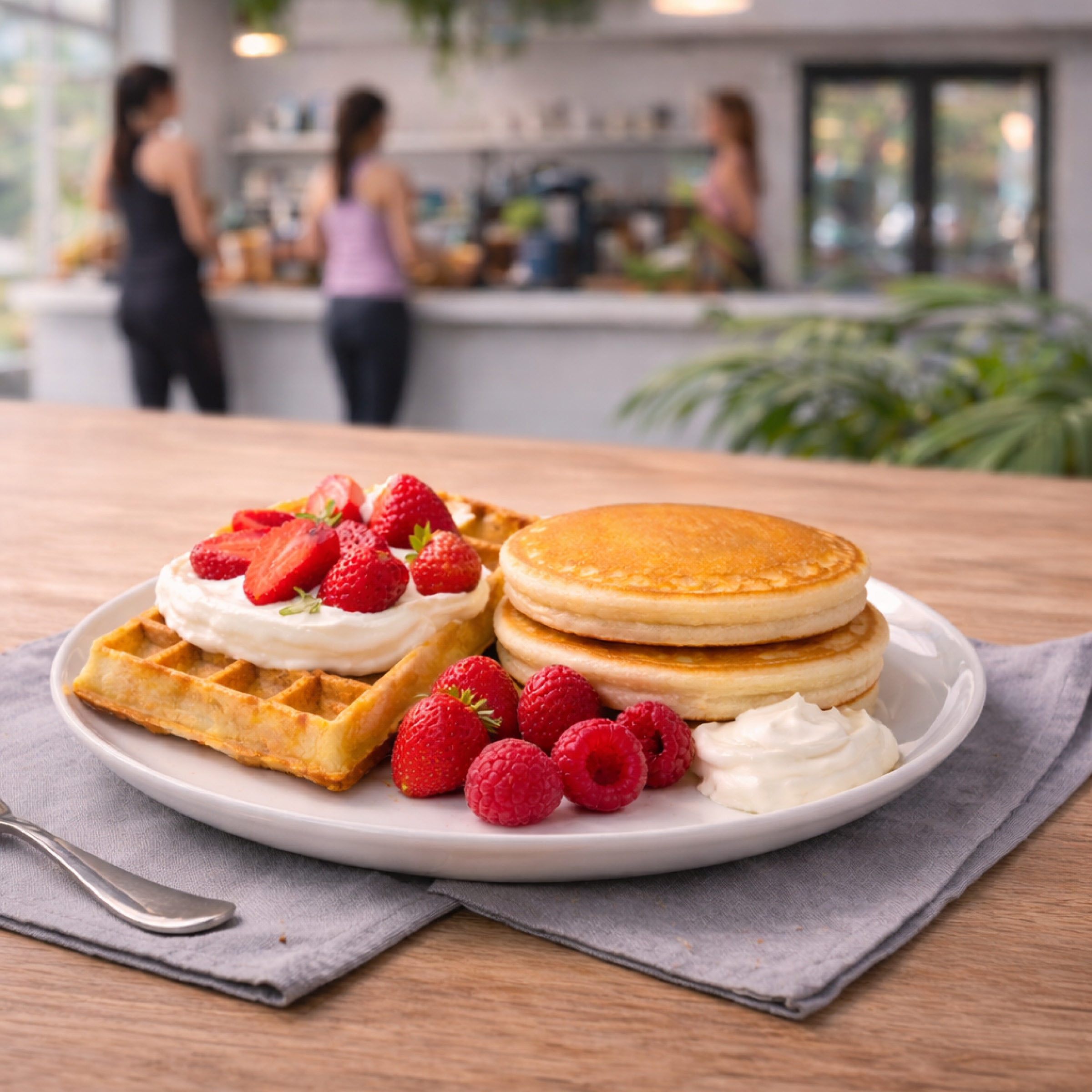 Schnell und flexibel einsetzbar: Die Backmischung wird einfach mit Wasser angerührt und kann sowohl als Protein-Waffel im Waffeleisen als auch als Pancake in der Pfanne zubereitet werden. Keine frischen Zutaten nötig, sofort einsatzbereit. Dank platzsparender Lagerung und ohne Kühlaufwand eignet sich der Mix ideal für einen reibungslosen Ablauf im Gastronomiealltag.
