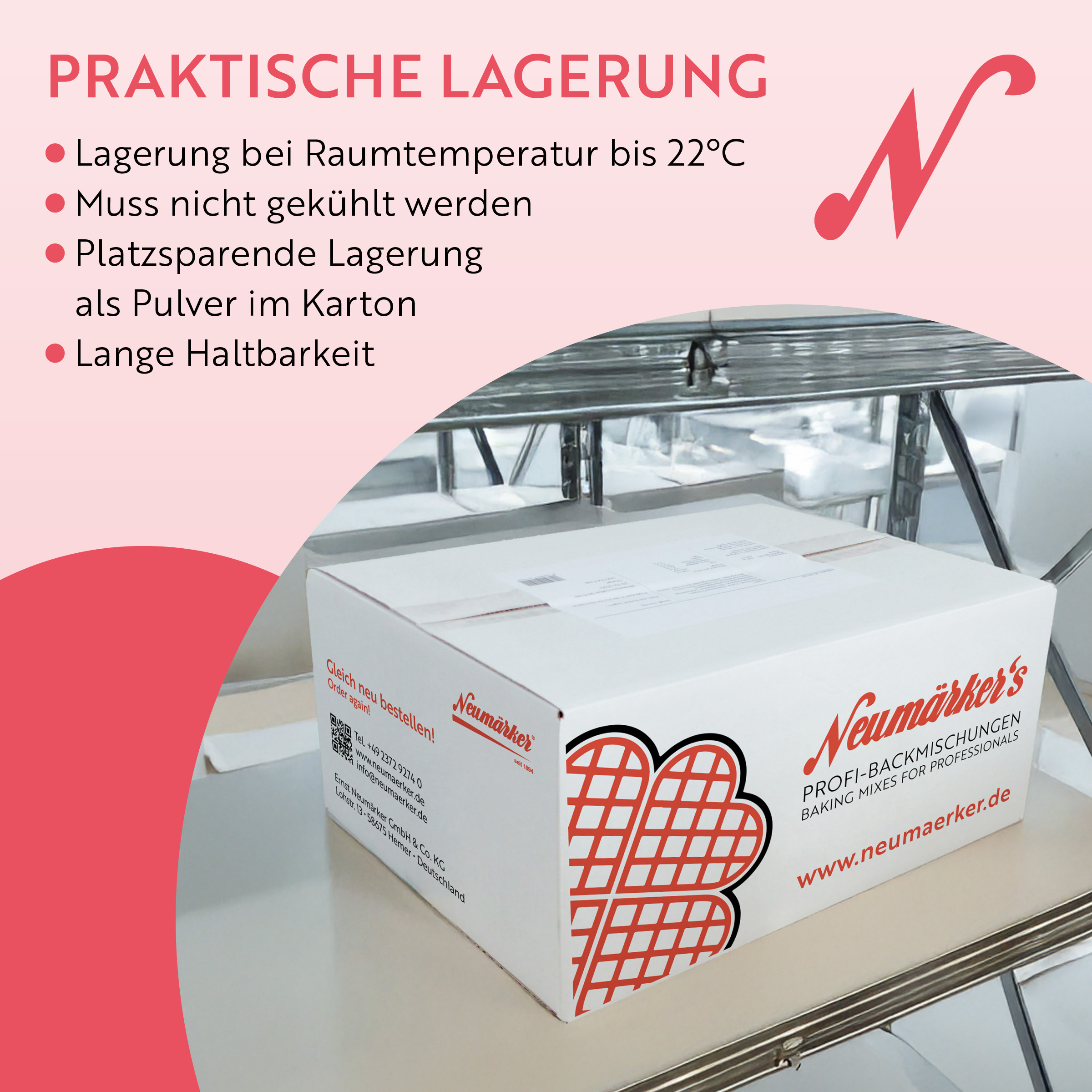 - Keine Kühlung für die Lagerung der Backmischung notwendig.