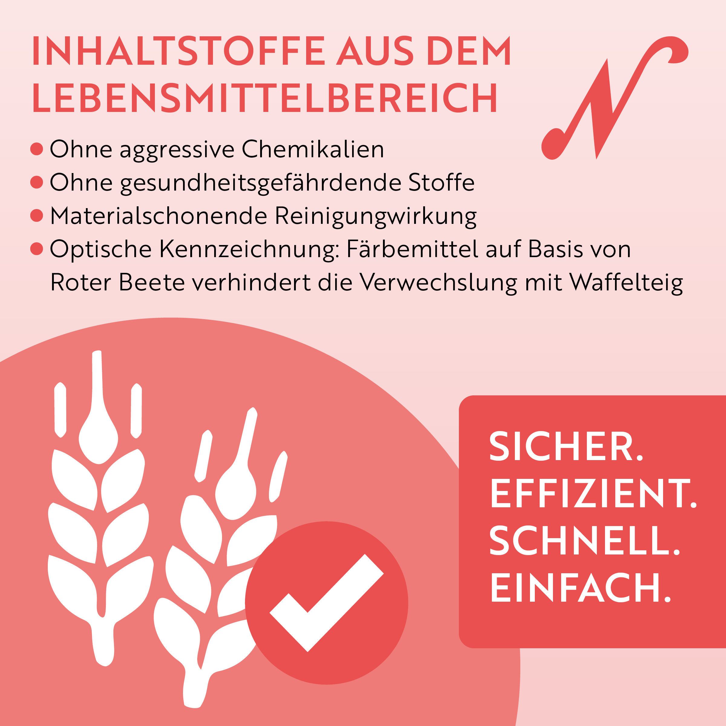 - Sicher, effizient und zeitsparend: Back&Clean Ready-Mix vereinfacht die regelmäßige Reinigung von Waffelbackformen deutlich.