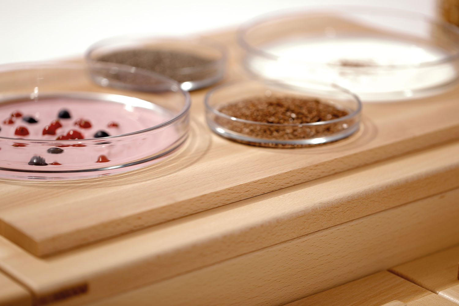 Mit dem modularen Set im schlichten Holzdesign wirkt jedes Buffet ansprechend strukturiert und aufgeräumt. Ob bei Frühstück-, Mittag- oder Abend-Buffets können die 4 Glasschalen beispielsweise mit Nüssen, Trockenfrüchten, Antipasti, Toppings oder Dressings bestückt und auch ganz einfach ausgetauscht oder nachgefüllt werden.