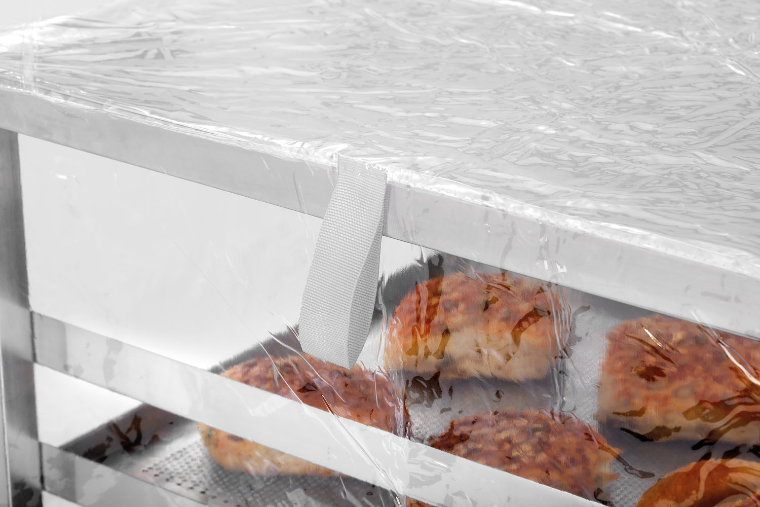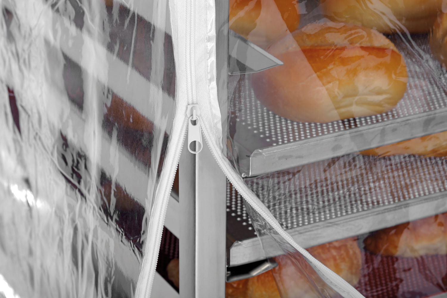 Die zum Euronormwagen AEN700-6040 passende transparente Abdeckhaube schützt bei Transport und Lagerung vor Staub und Unreinheiten – sogar in Kühlräumen. Die Reißverschlüsse ermöglichen ein unkompliziertes Bestücken des Wagens auch mit aufgezogener Haube.