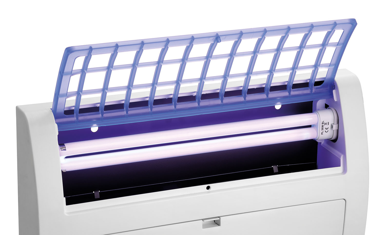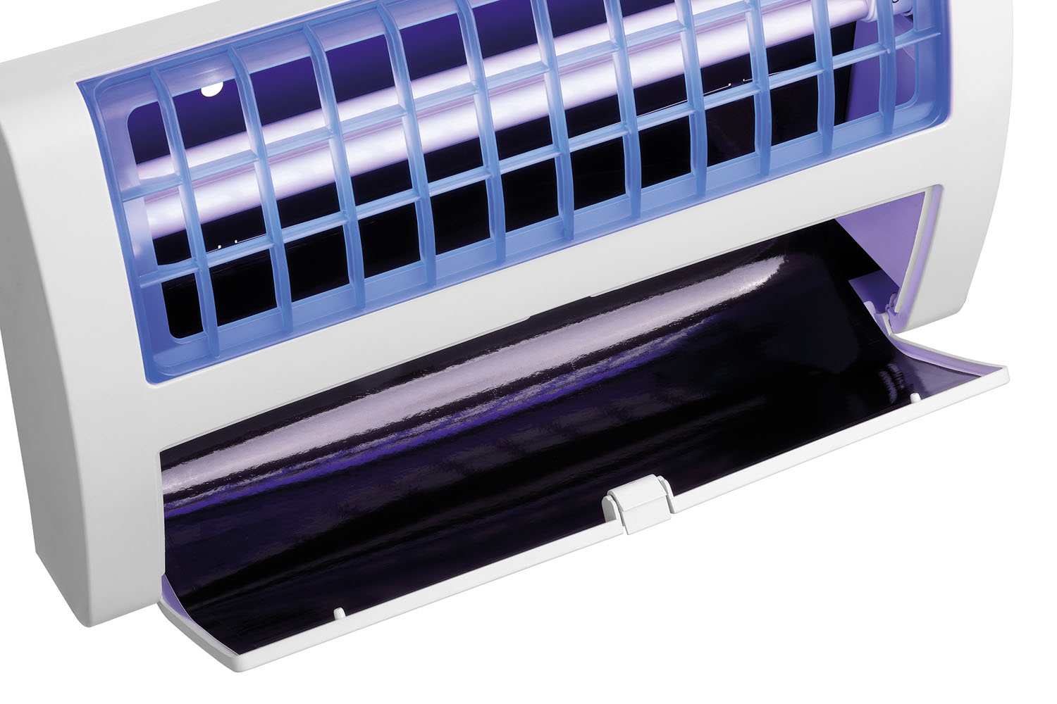 Die geräuschlose und hygienische Insektenfalle mit großem Wirkradius zieht Insekten durch UV-Licht an. Diese bleiben sicher auf der dahinter angebrachten und leicht austauschbaren Klebefolie haften.