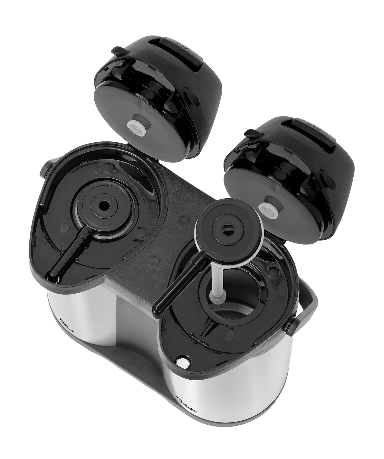 2 Mal 1,9 Liter – Heiße Getränke im Doppelpack: Mit der doppelten Isolierpumpkanne können mit nur einem Gerät 2 verschiedene Heißgetränke gleichzeitig angeboten werden. Sei es am Buffet, in der Kantine, bei Veranstaltungen oder Meetings.