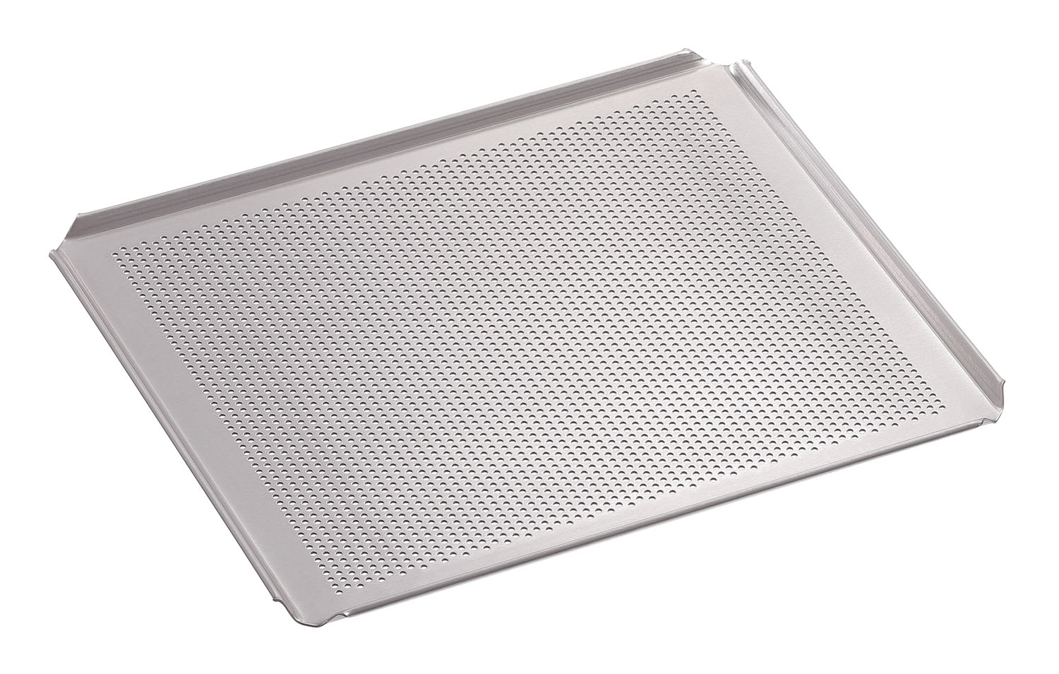 Das Lochblech aus Aluminium im 2/3 GN-Format ist temperaturbeständig bis 260 °C. Der 4-seitige Rand ermöglicht ein sicheres Backen und Transportieren.