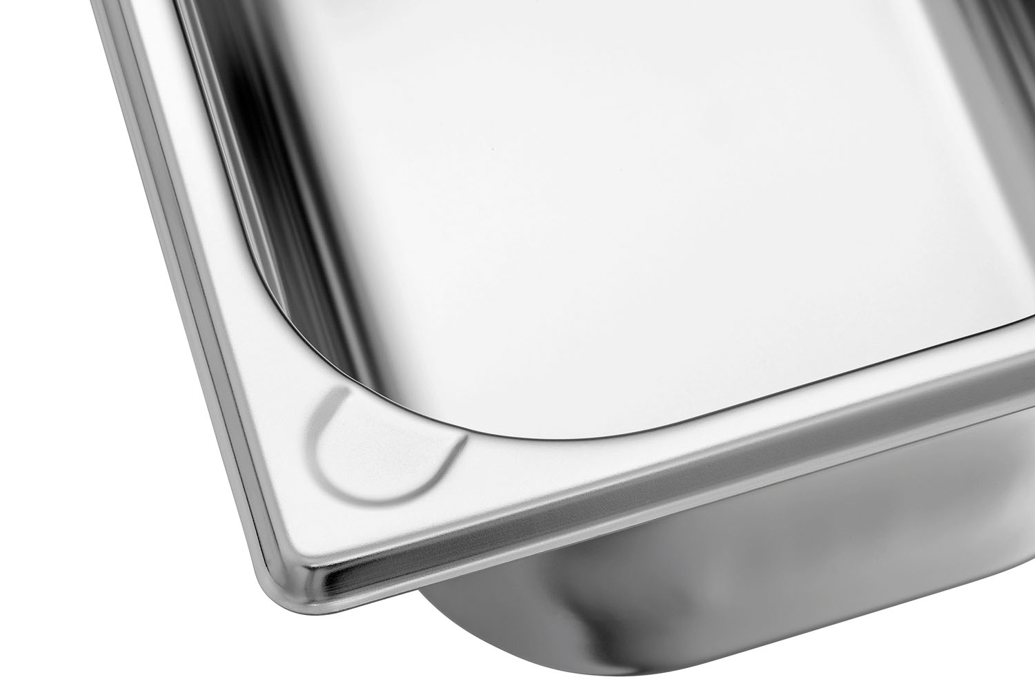 GN-Behälter nach EN 631 aus rostfreiem Chromnickelstahl mit seidenmatter Oberfläche