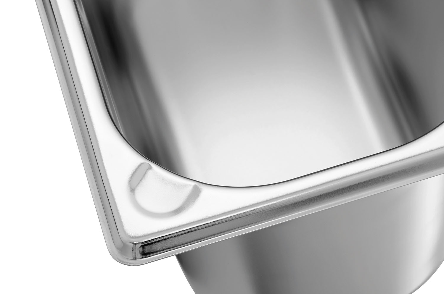 GN-Behälter nach EN 631 aus rostfreiem Chromnickelstahl mit seidenmatter Oberfläche