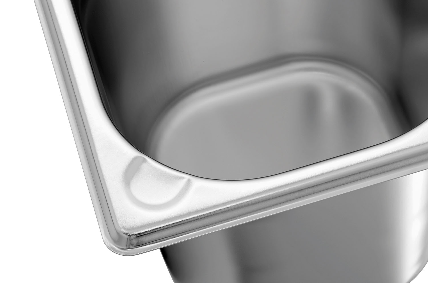 GN-Behälter nach EN 631 aus rostfreiem Chromnickelstahl mit seidenmatter Oberfläche