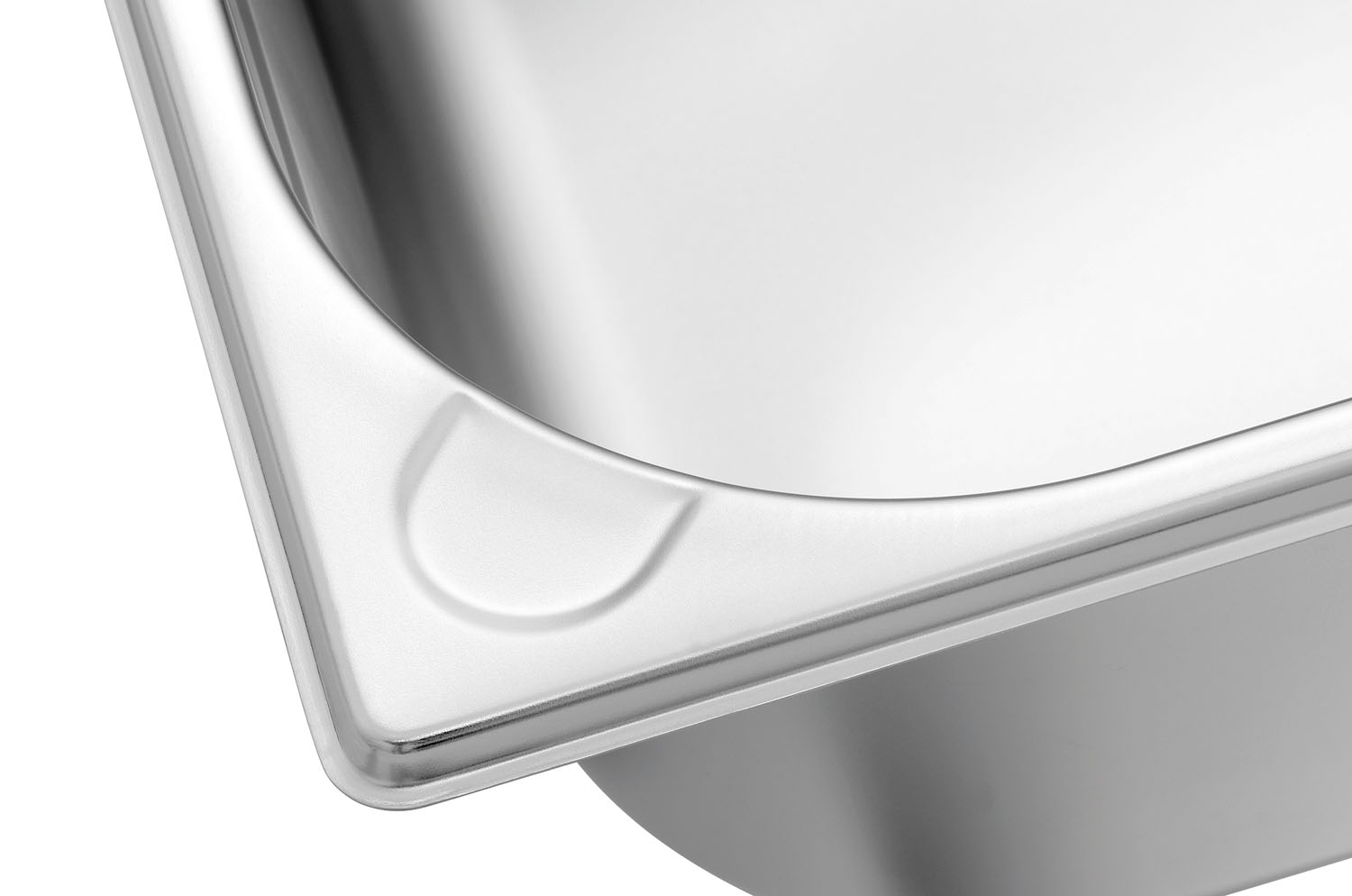 GN-Behälter nach EN 631 aus rostfreiem Chromnickelstahl mit seidenmatter Oberfläche