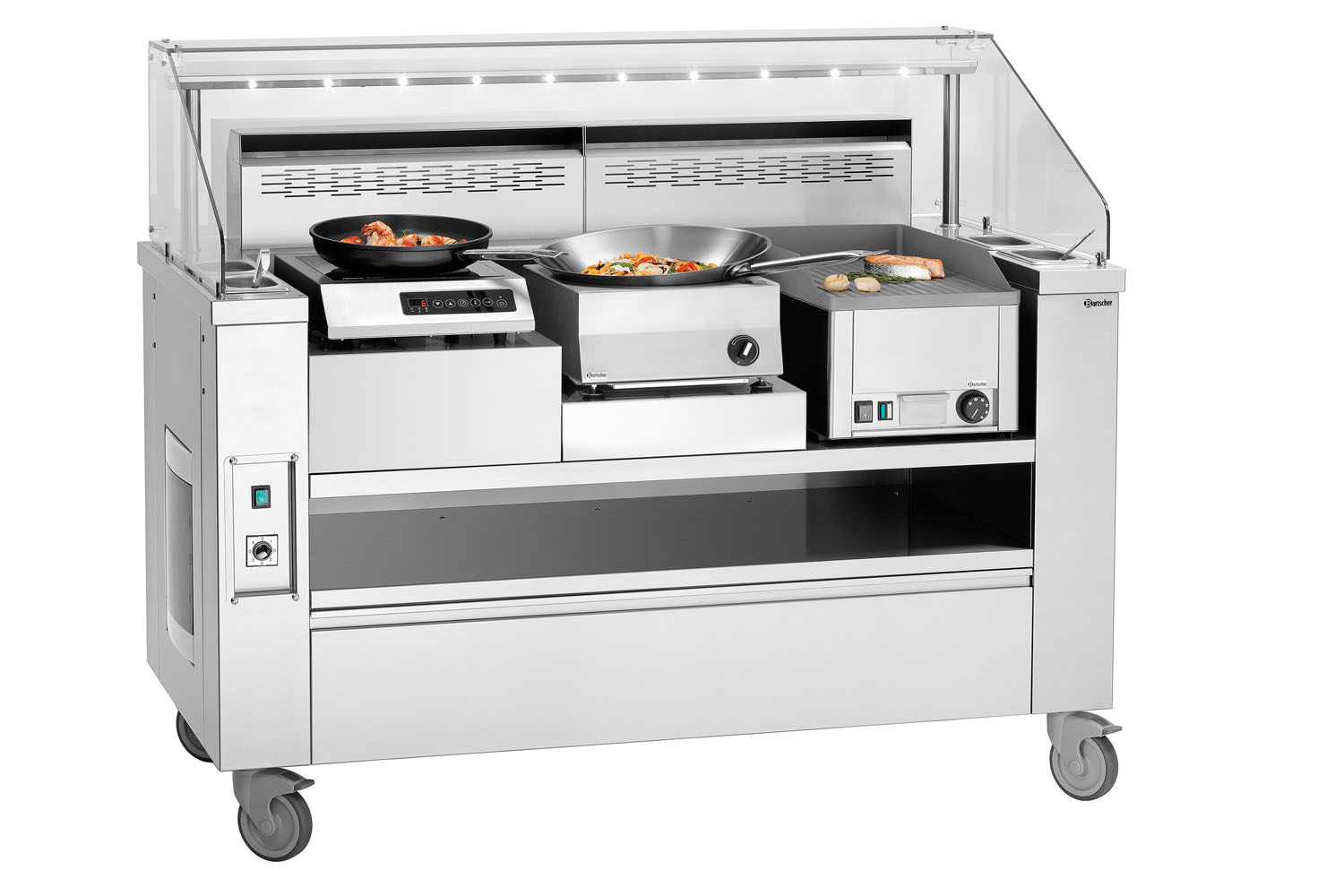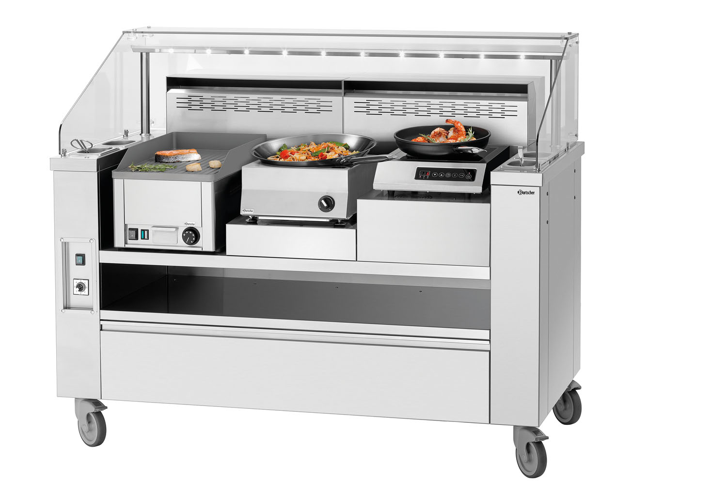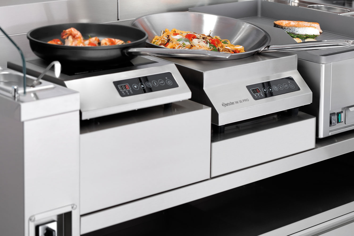 Für ein angenehmes Kochen bei gleichmäßiger Arbeitshöhe mit unterschiedlichen Geräten in den Kochstationen KST Plus.