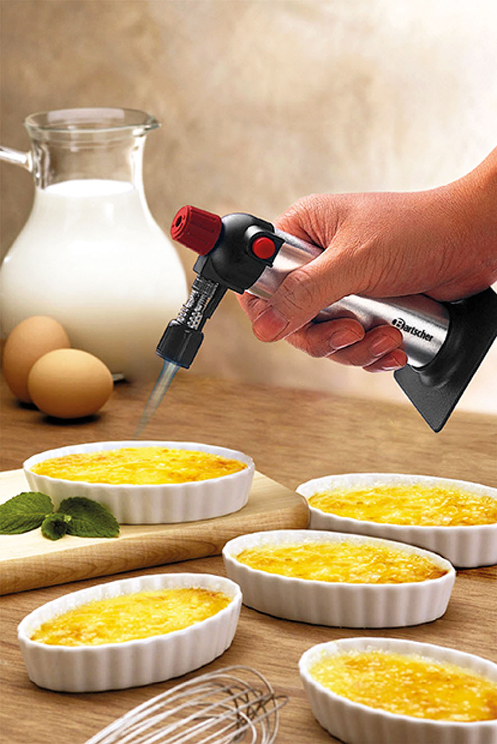 Ob für die Speisenvorbereitung oder Zubereitung, der Küchenhelfer findet bei den verschiedensten Handgriffen Anwendung – Sei es beim Karamelisieren, Käse schmelzen, Tomaten häuten, Nachbräunen und vielem mehr.