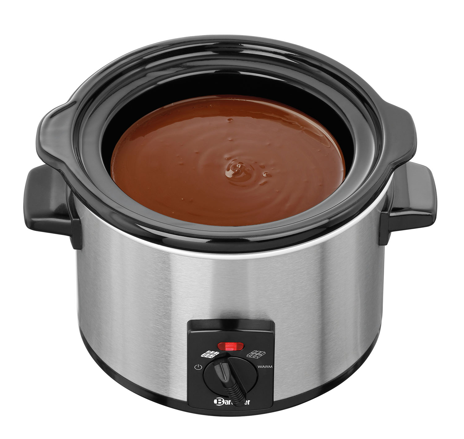Ob Vollmilch-, Zartbitter- oder weiße Schokolade – schonendes Warmhalten von bis zu 1,25 Litern Schokolade ohne Anbrennen.