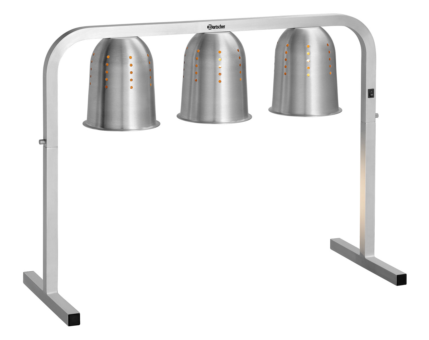3 Wärmelampen mit belüfteten Aluminiumreflektoren sorgen für eine zielgerichtete Wärmeabgabe. Die Stellfläche bietet Platz für Behälter bis zu 2/1 GN und ist somit bestens für große Buffets, Caterings oder Kantinen geeignet.