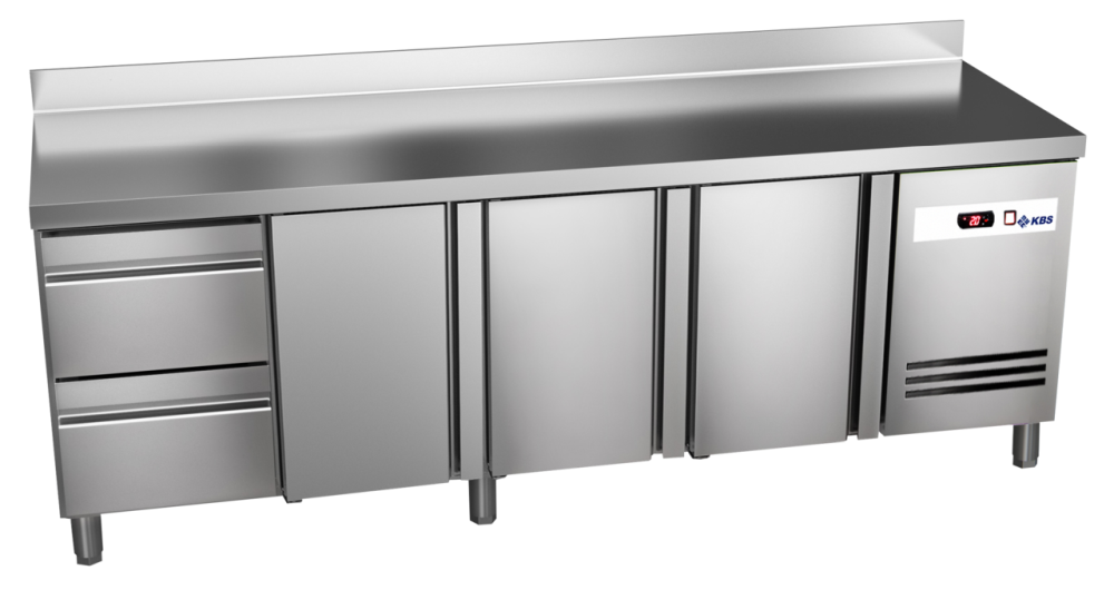 Weiterführende Links zu "KBS Kühltisch Ready KT4002 mit Arbeitsplatte, Aufkantung 3 Türen 2 halbe Schublade"