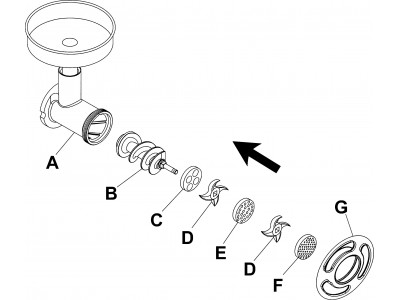 Korpus in Edelstahl Trichter und Walze aus Edelstahl Herausnehmbarer Mahlsatz Schneidsatz... mehr