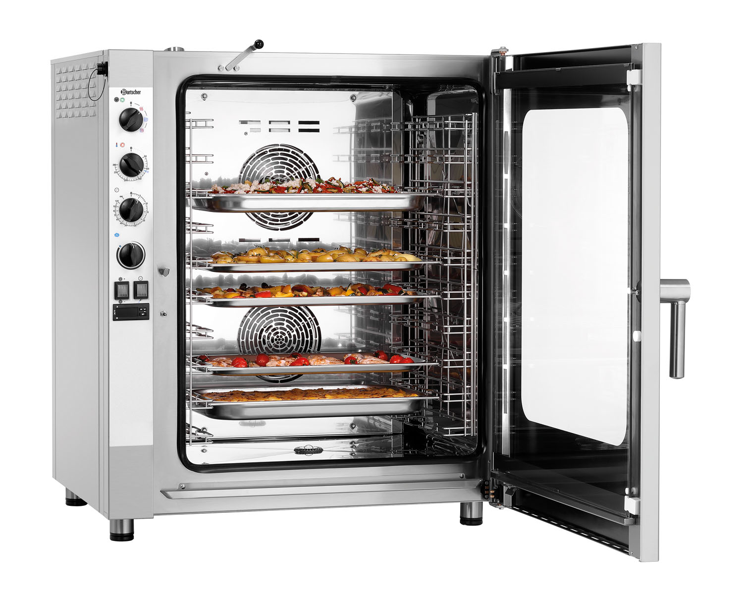 Der Bartscher Kombidämpfer der Serie Silversteam mit 10 Einschüben im 1/1 GN Format – Der ideale Partner in jeder Küche. Die manuelle Bedienung ermöglicht eine unkomplizierte, bedarfsgerechte Steuerung aller Garvorgänge.