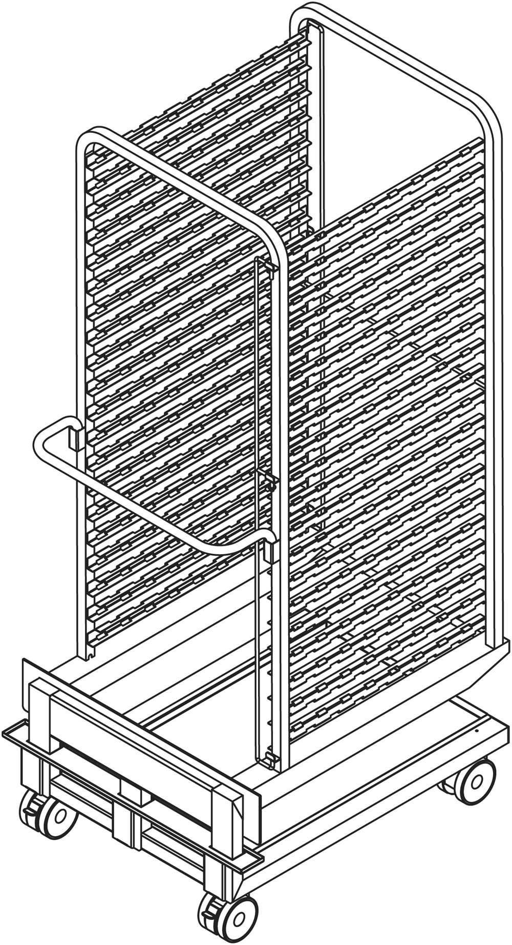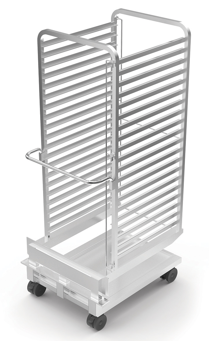 HORDENGESTELLWAGEN MIT FETTAUFFANGWANNE - MAXIMALES GEWICHT 180 KG - MAXIMALES GEWICHT PRO BEHÄLTER 25 KG 694 x 835 x 1706 h 20 x 2/1 GN - 40 x 1/1 GN ↨ 63