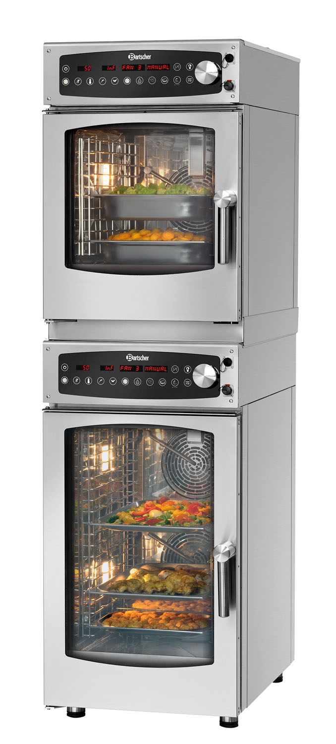Die platzsparende Lösung: Das Verbindungskit ermöglicht das Stapeln von 2 Elektro-Kombidämpfern 1/1 GN der Serie "Bartscher Kompakt" und "Silversteam-K".
