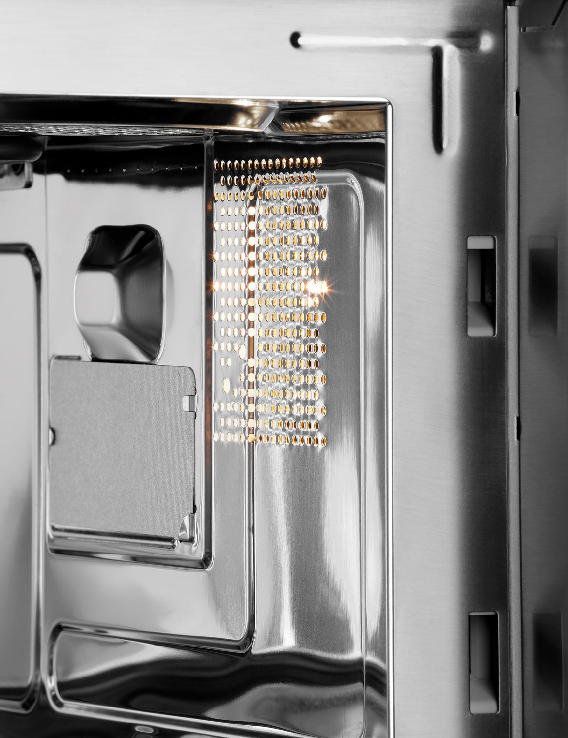 Mit den zusätzlichen Heißluft- und Grillfunktionen bietet die Mikrowelle ein großes Spektrum für die Art der Speisenzubereitung. Zeit und Leistung können ganz individuell nach Bedarf entsprechend der Funktion eingestellt werden.