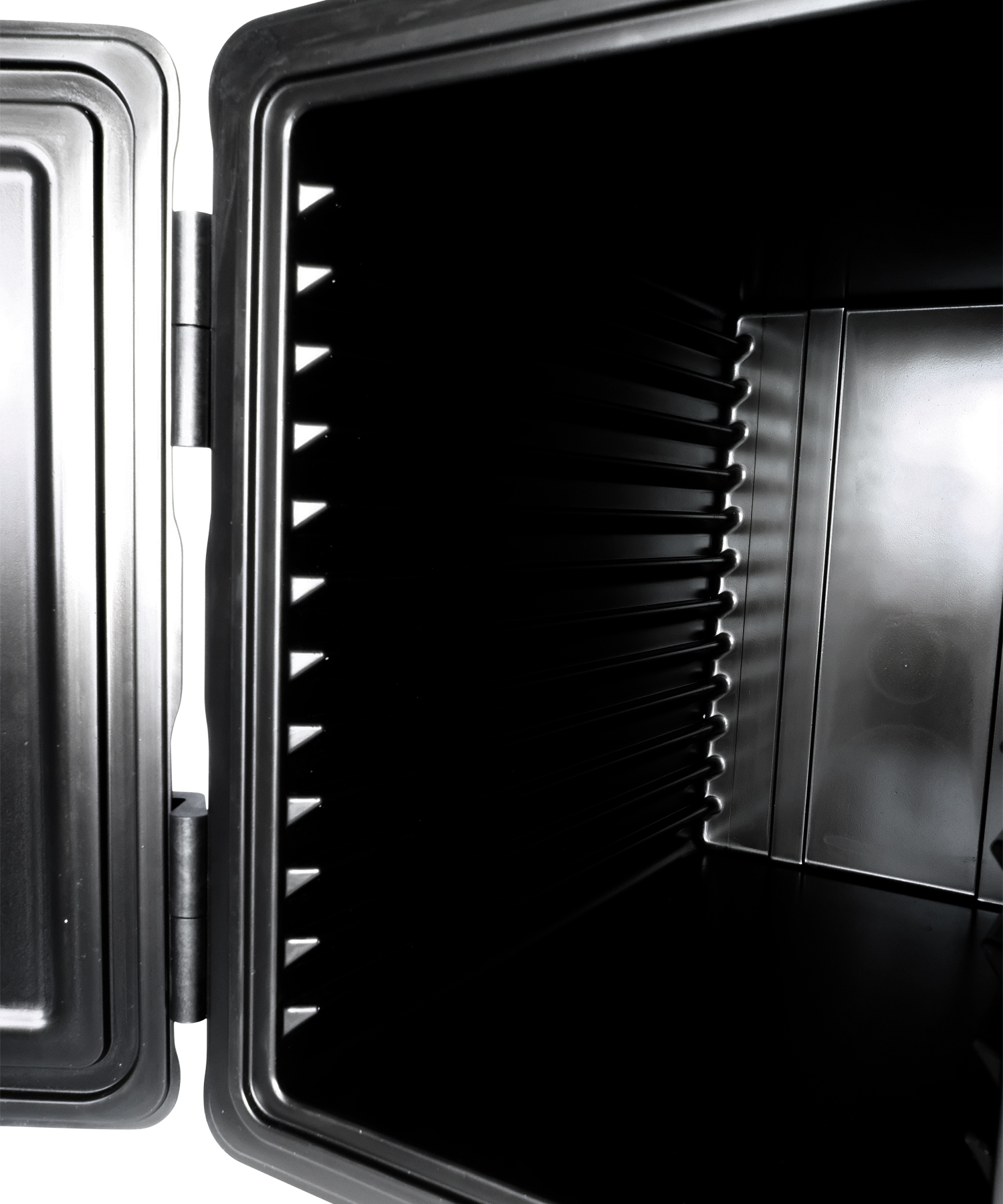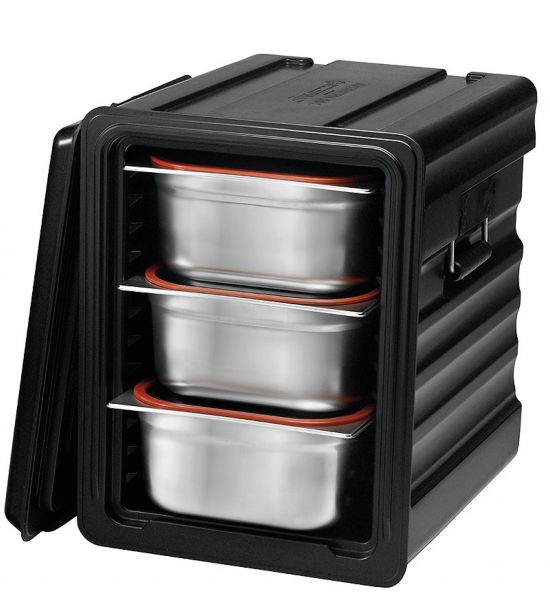 - Material: Kunststoff, - Frontlader, - Doppelwandige polyurethanisolierte Speisetransportbox, - 12 Auflageschienen, - Einfach aushängbare Flügeltür mit Klappverschluss, - Klappverschluss ist arretierbar, - Menükartenleiste, - Stapelbar und Spülmaschienenfest, - Temperaturverlust von 1,5 °C pro Stunde bei warmen, und 0,5 °C pro Stunde bei kalten Speisen, - Geeignet für Lebensmittel von -40 °C bis +100 °C, - Hält Ihre Speisen im GN-Behälter warm oder kalt, - Gewicht: 10,2 kg, - Maße: B 625 x L 450 x H 575, - Inhalt: 83 Liter